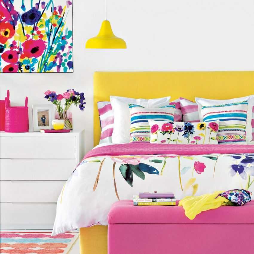 Если самое сложное для хозяйки комнаты — это проснуться с утра, то стоит обратить внимание на динамичные, чистые оттенки розового. Яркие акценты по всей площади приведут в тонус и подарят заряд бодрости на целый день. Просыпаться в наполненной жизнью и планами на будущее спальне станет намного легче