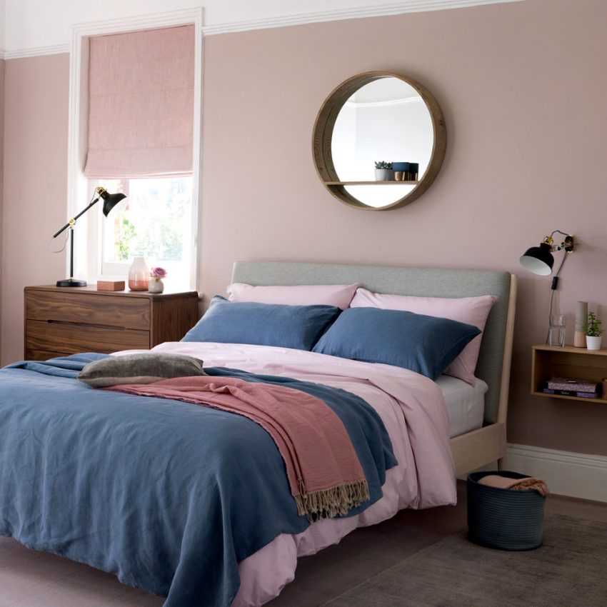 Приглушенные пастельные оттенки воспринимаются спокойно даже мужчинами. Они как будто успокаивают, ласкают взор, создают ощущение уюта. Именно такой цвет, особенно в сочетании с белым, серым или оливковым, отлично подойдет для оформления спальни для двоих.