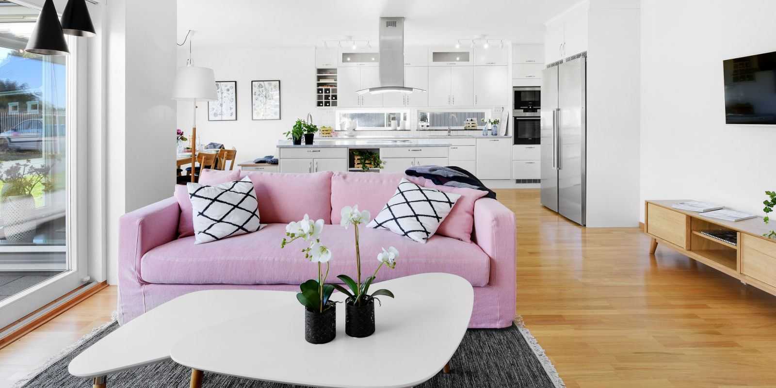 С какими цветами интерьера лучше всего совмещать розовый диван