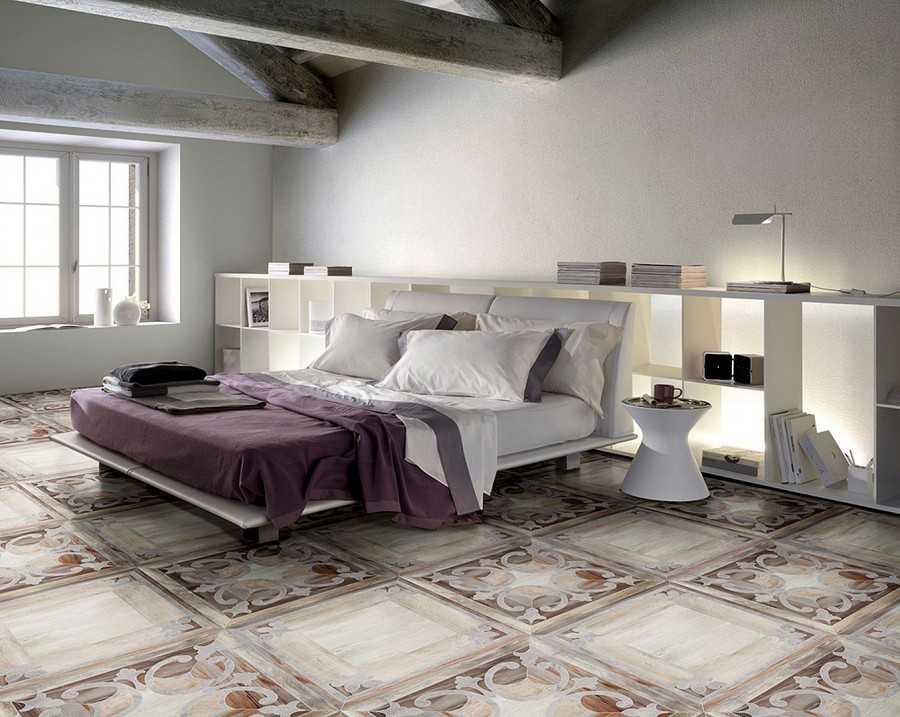 - Керамогранит подобрать непросто, ведь можно растеряться среди разнообразия форм и тематик. Однако всегда можно остановить выбор на материале, имитирующем какой-либо облицовочный материал. Для отделки студии-лофт или зала в промышленном стиле подойдет имитации бетона или камня. Королевский декор в гостиной подчеркнет мраморный пол из керамогранита. Декор под ламинат, паркет и другие виды деревянного пола с легкостью вписывается в любой стиль. А для любителей тематических рисунков удачным выбором станет строгая бежевая клетка «Традиция» или декоративные вставки с итальянской майоликой из линейки «Капри».