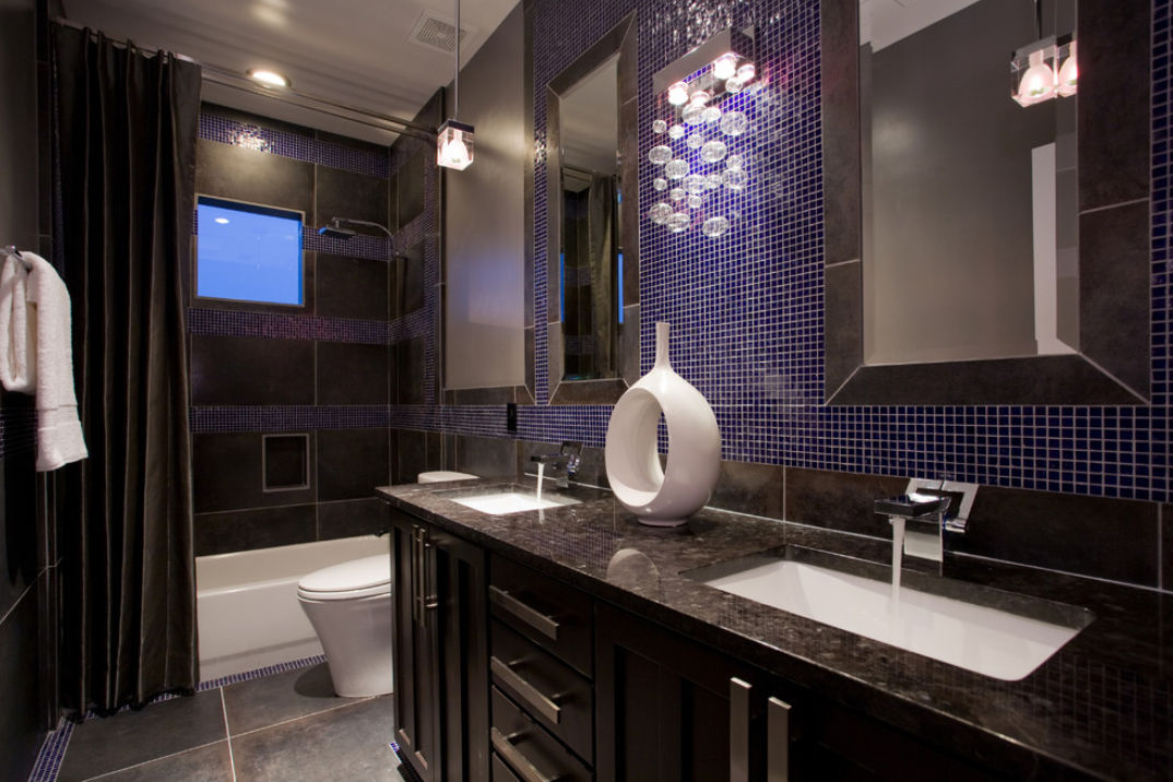 Чрезмерно активные натуры обретают спокойствие в тёмно-синей ванной комнате, беря под контроль свои эмоции и получая полную релаксацию.