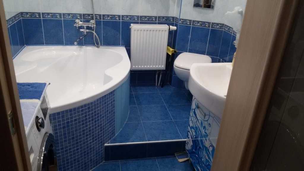 Совет: Небольшая глянцевая плитка для ванной синего цвета подойдёт больше, чем, крупная, которая воспринимается как цельный массив и действует угнетающе. Сочетание кафеля или мозаичных элементов нескольких близких оттенков будет смотреться намного интереснее монохромного покрытия. Для усиления эффекта можно использовать контрастные бордюры и вставки с рисунком.