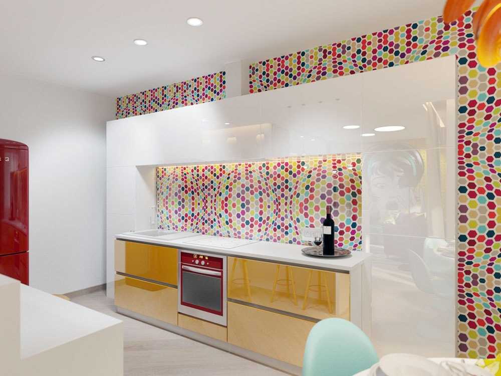 В рабочей зоне также можно применять трехмерные обои, например, вместо стандартного кухонного фартука. Чтобы материал не марался, сверху его покрывают слоем прозрачного стекла. Лучшими вариантами станут морские картинки, фото растений, абстракция. Если столовая и кухня совмещена, в комнате может быть только одна зона с 3D-обоями.