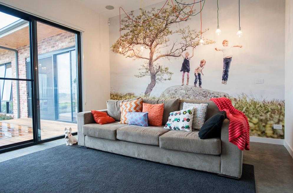 Различные варианты можно применить и в гостиной. Здесь основополагающие стили – классика, модерн, прованс, хай-тек. 3d пейзажи, объемные графические изображения, имитации камня или кирпичной кладки прекрасно подойдут для этой комнаты, в зависимости от ее стиля.