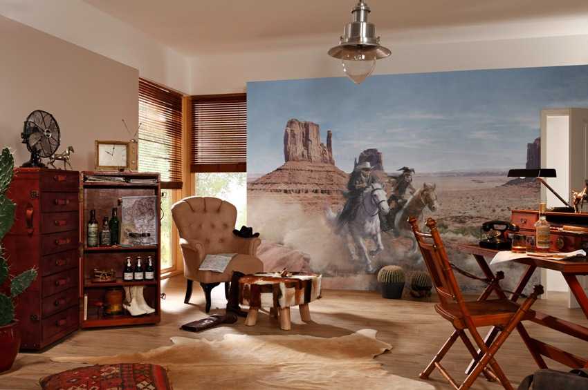 В помещениях, имеющих достаточно большое пространство, уместными будут фактурные обои, многоцветные комбинации. Все должно быть гармонично и отвечать общей атмосфере помещения, соотноситься с предметами интерьера. При использовании полотен с объемными, панорамными или насыщенными картинками целесообразно отказаться от мебели сложной конструкции.