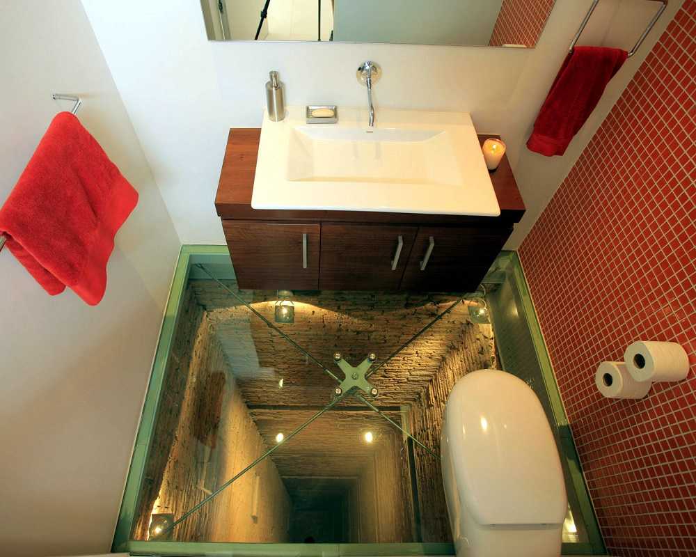 Косые линии швов между элементами облицовки пола визуально расширяют пространство