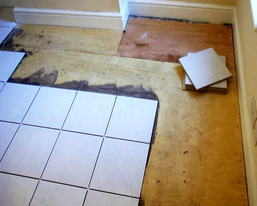 Если вы решили приостановить ремонт туалета плиткой то нужно убрать с пола излишки клея