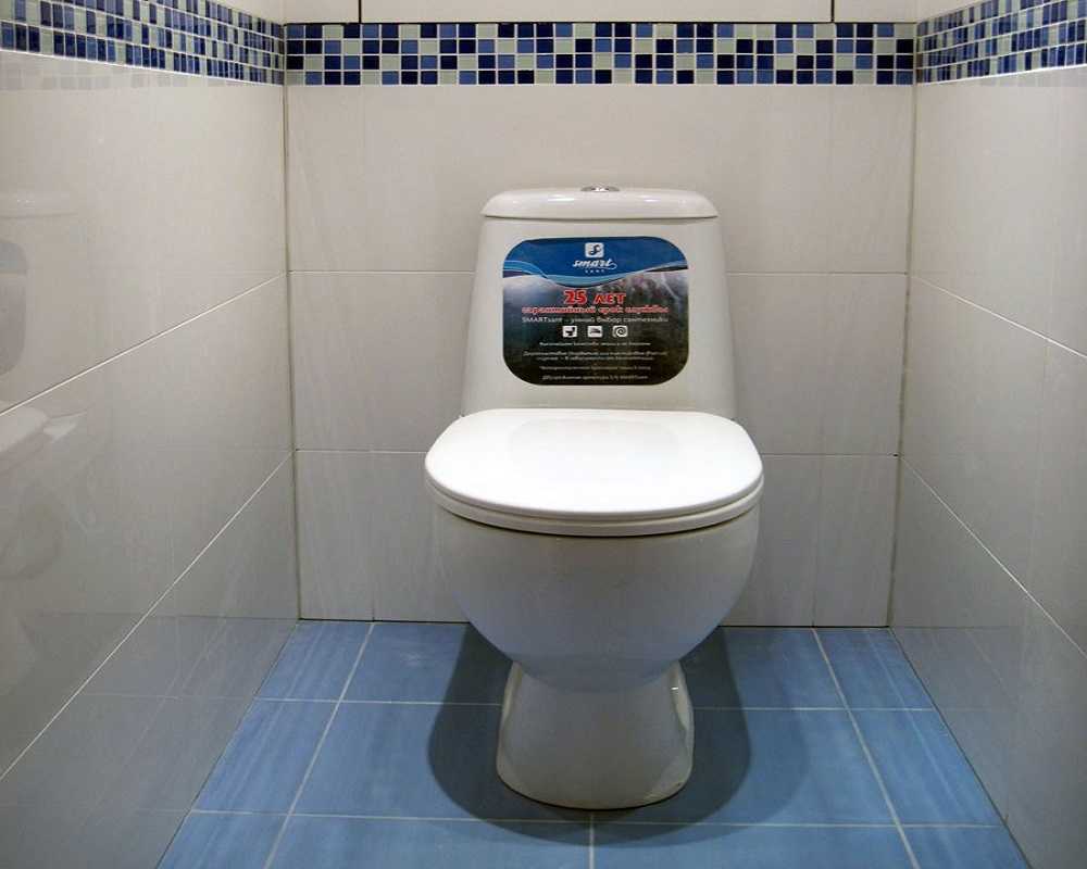 Со стен и пола убирают старые покрытия. С помощью отвеса проверяют вертикальность всех стен в туалете. Если какая-то стена по вертикали не ровная то нужно будет начертить на полу или на потолке соответствующую линию. С помощью строительного раствора нужно будет выравнять неровную стену, а при небольшом отходе от вертикали это сделать можно будет за счёт увеличения слоя плиточного клея во время приклеивания плиток.