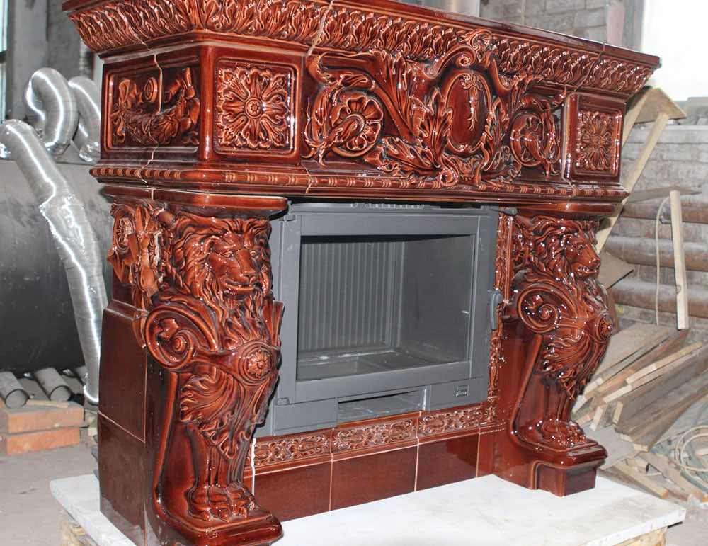 Печь-камин можно спроектировать по индивидуальному заказу практически любой конфигурации. Отделка изразцами подчеркнет индивидуальность интерьера. Как правило в таких каминах используют рабочий кирпич высокого качества (огнеупорный).