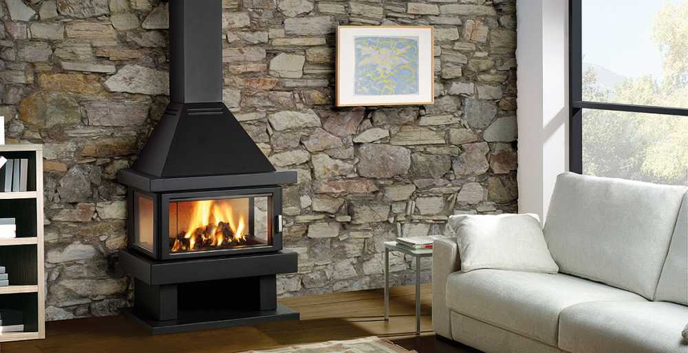 герметичная топка с большим стеклом, позволяющим наблюдать за пламенем, но не допускающим попадания дыма в комнату;