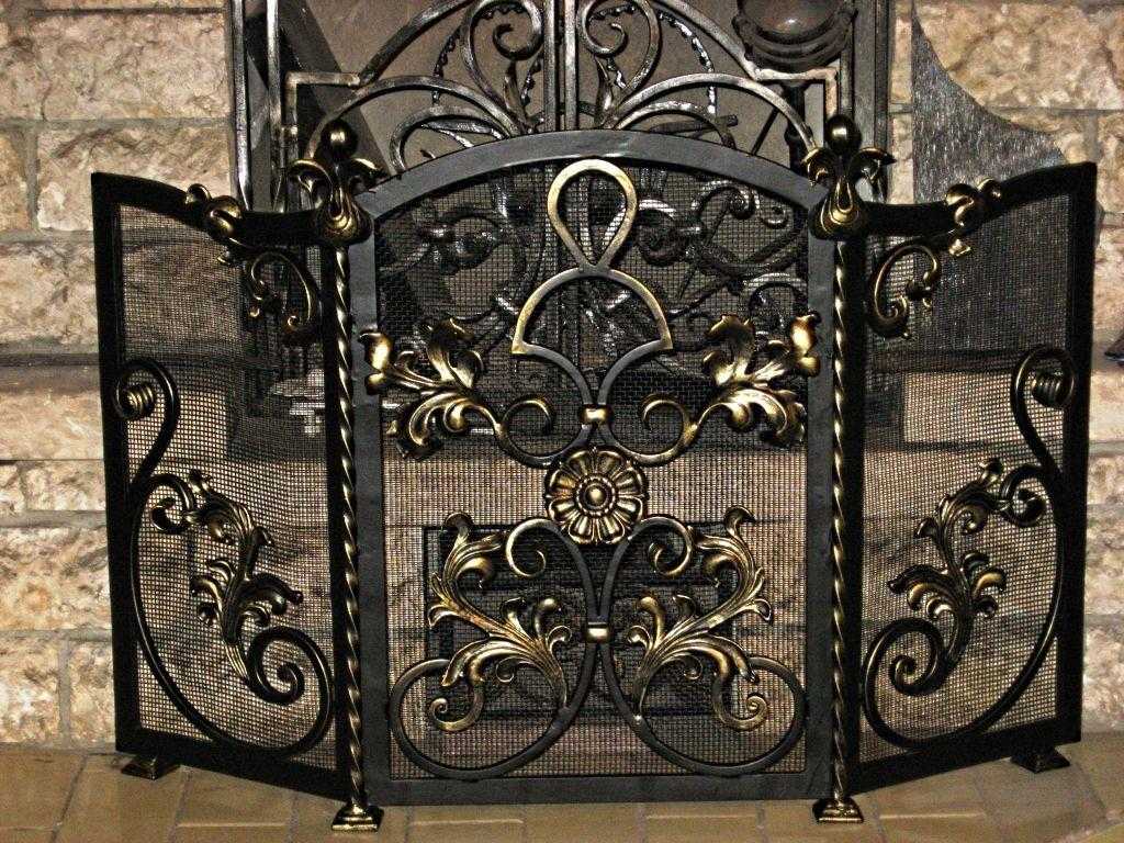 Стилистика интерьера и размер очага определяют требования к экрану. Экран-ширма более универсален, так как имеет поворотные части, которые могут сужать его ширину и огораживать огонь с трех сторон. Каминный экран в виде панели с коваными элементами подойдет для маленьких каминов.