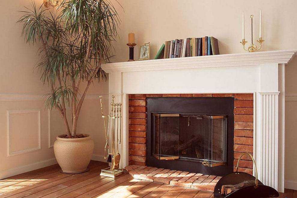 Крайне не рекомендуется отделывать каминную полку деревом, т. к