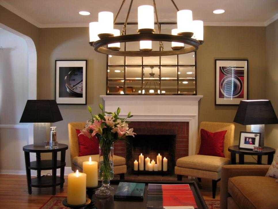 Можно использовать подсвечники, канделябры или просто расставить большие свечи в соответствии с вашим замыслом. Подчеркнем, что не для каждого светлого камина подойдет этот вариант, ведь языки пламени могут оставить черный след.