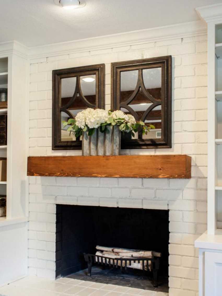 В качестве дополнительных декоративных элементов можно использовать картины или фотографии, встроенные в рамки. Это создаст домашнюю и семейную атмосферу и гармоничную обстановку в комнате. Изображения можно разместить в боковых частях или же обустроить дополнительную полку под камином, и поставить там картинки в рамках.