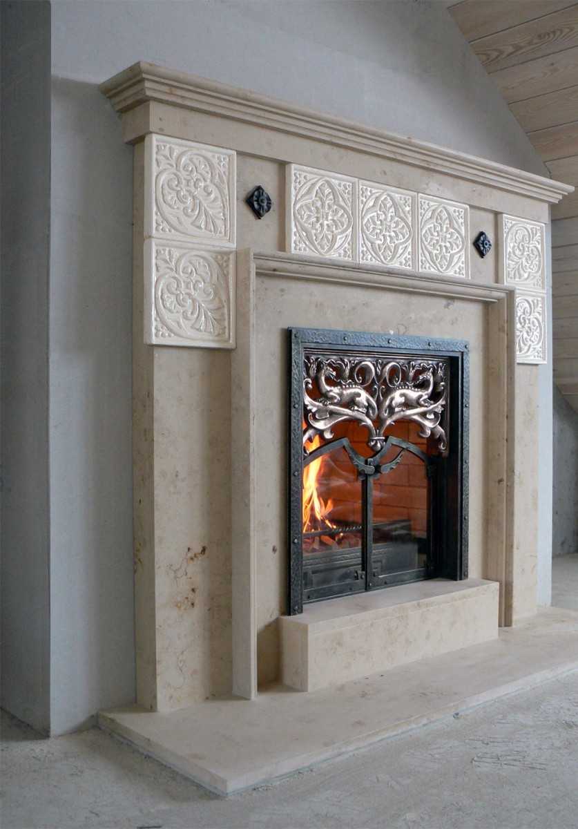 Особенность камина в том, что большинство его поверхностей прогревается не настолько сильно, чтобы испытывать на прочность отделочные материалы. Поэтому камины гораздо проще, чем печи обложить изразцами уже после того, как отопительный прибор закончен.