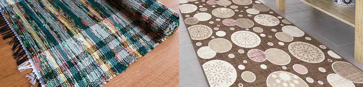 Они не имеют ворса, легко поддаются чистке, что очень важно для подобных помещений. Тканые изделия имеют широкий ассортимент узоров и расцветок, их можно вписать в любую дизайнерскую задумку и освежить интерьер стильным аксессуаром