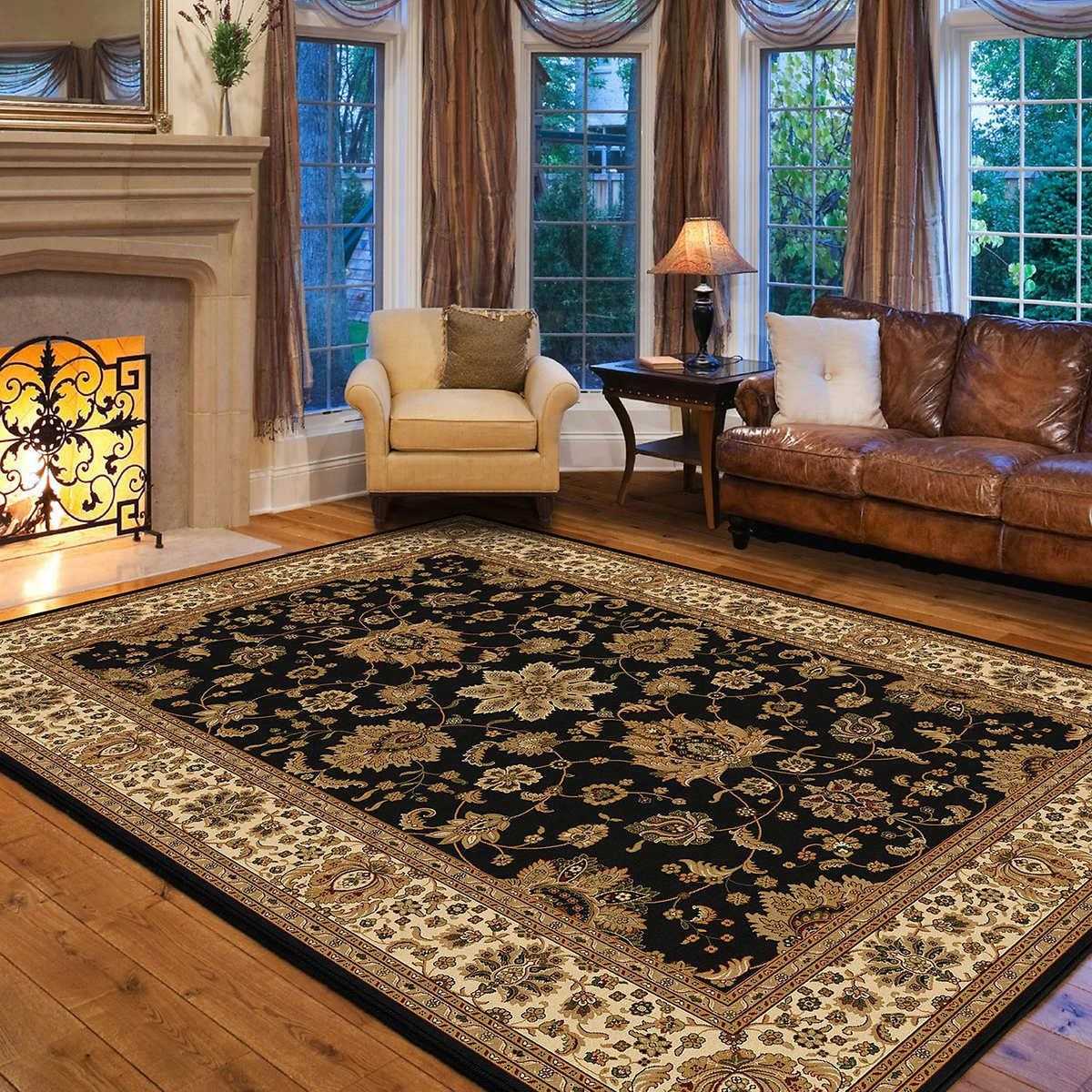 - Для классического стиля подойдут традиционные персидские ковры или другие полотна из натуральных материалов, выполненных в естественных оттенках. Будут хорошо смотреться и орнаменты в стиле барокко и прочих направлениях той эпохи.