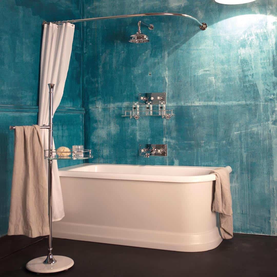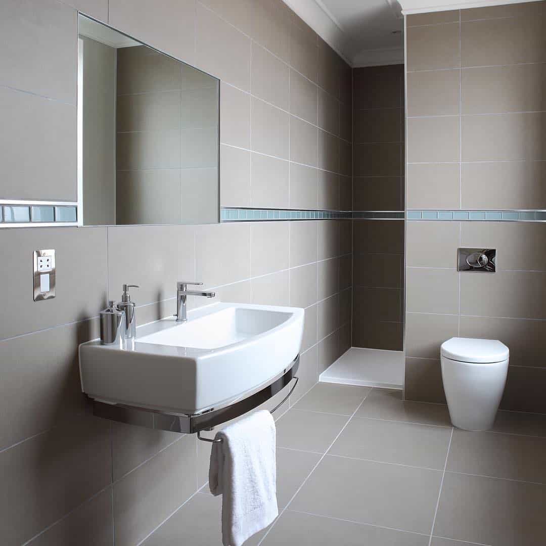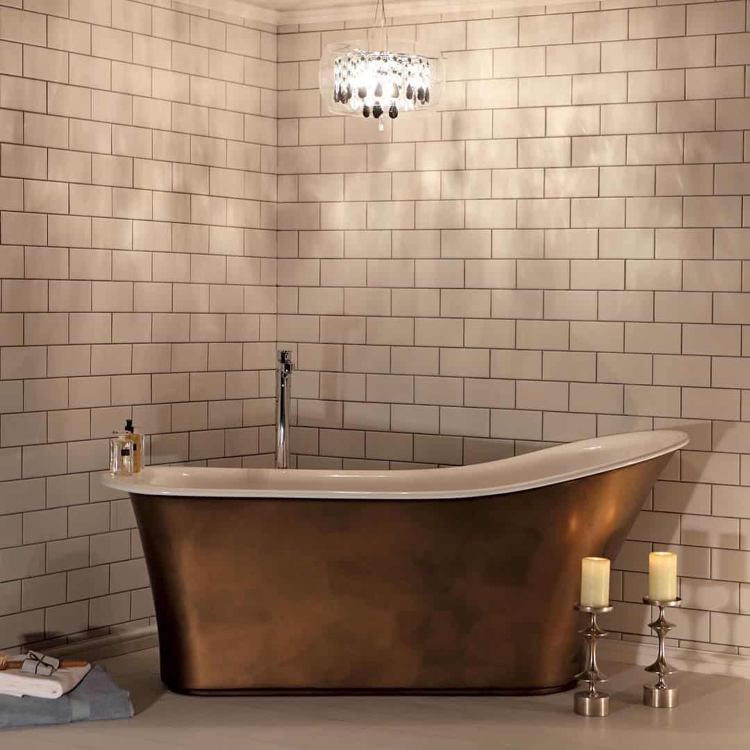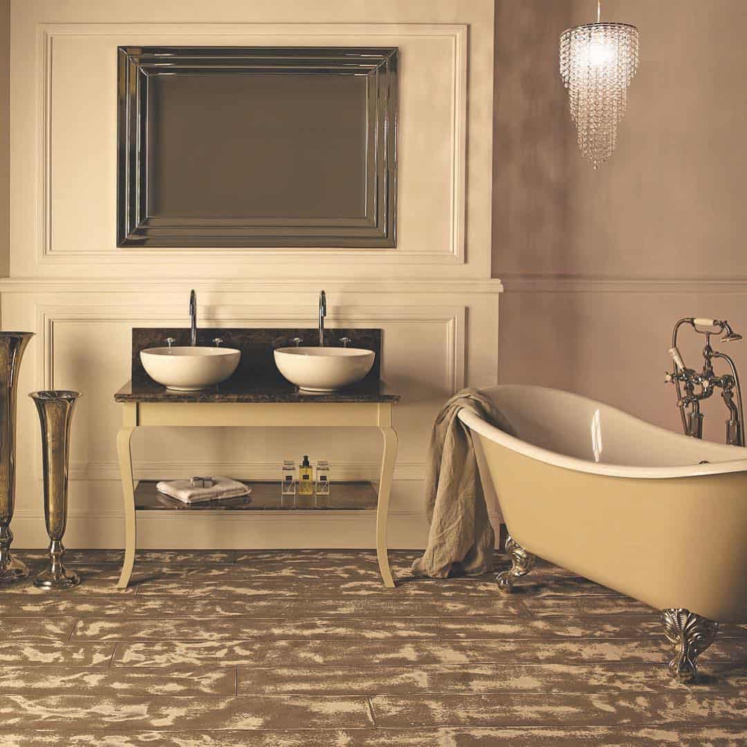 Данный стиль лучше всего подходит для просторных и больших по площади помещений. Однако, в случае с ванной это не всегда возможно. Приходится искать какие-то дизайнерские решения, позволяющие хотя бы зрительно расширить имеющееся пространство. Для этого цвета неоклассики подходят, как нельзя лучше – белый, кремовый, бежевый, светло серый и другие неяркие пастельные тона. Если окрасить стены и потолок в один светлый оттенок, помещение будет казаться выше и просторнее.