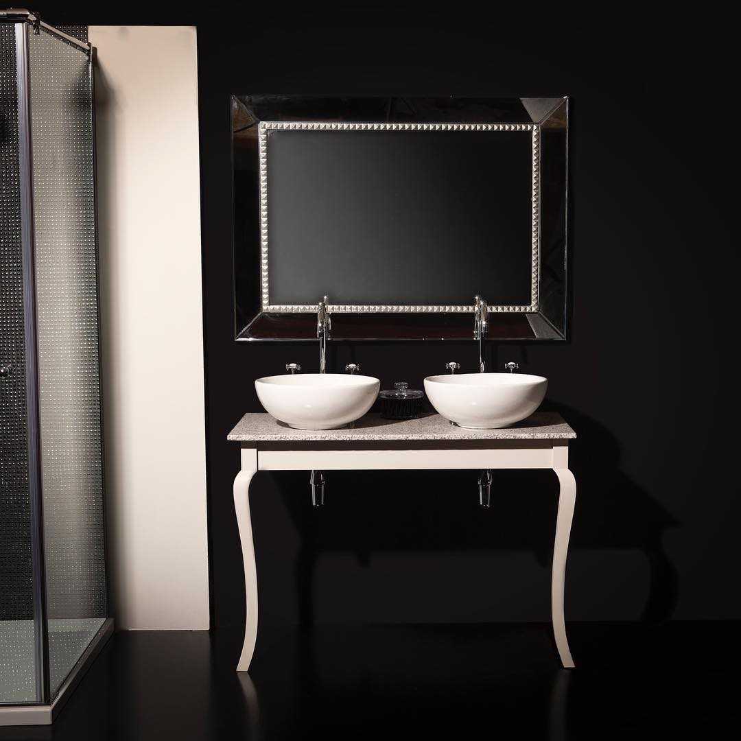 Если ванная в стиле Минимализм — это практически полный отказ от декоративности, неоклассическое оформление менее аскетично. Важным элементом декора для ванны с подобным дизайном является зеркало. Оно должно иметь очень красивую, широкую раму с лепниной. В большинстве случаев именно зеркало становится смысловым центром интерьера, а также способствует визуальному расширению пространства.