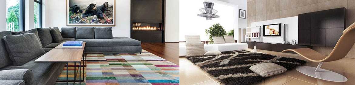 Стильные ковры с ворсом или Шегги. Изделия прекрасно вписываются в любую комнату, придавая ей уютный комфортный вид. В помещениях с большой проходимостью следует использовать натуральные коврики со средней и малой длиной ворса. Следует учесть, что длинноворсовые изделия требовательны к уходу и нуждаются в частой чистке.