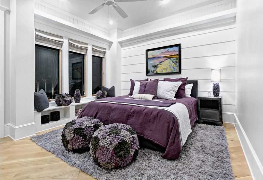 Спальня, пожалуй, единственная комната, в которой без ковра не обойтись. Сюда отлично подходят мягкие изделия с длинным ворсом. Они приятны на ощупь, способствуют расслаблению, создают благоприятную атмосферу для полноценного отдыха.
