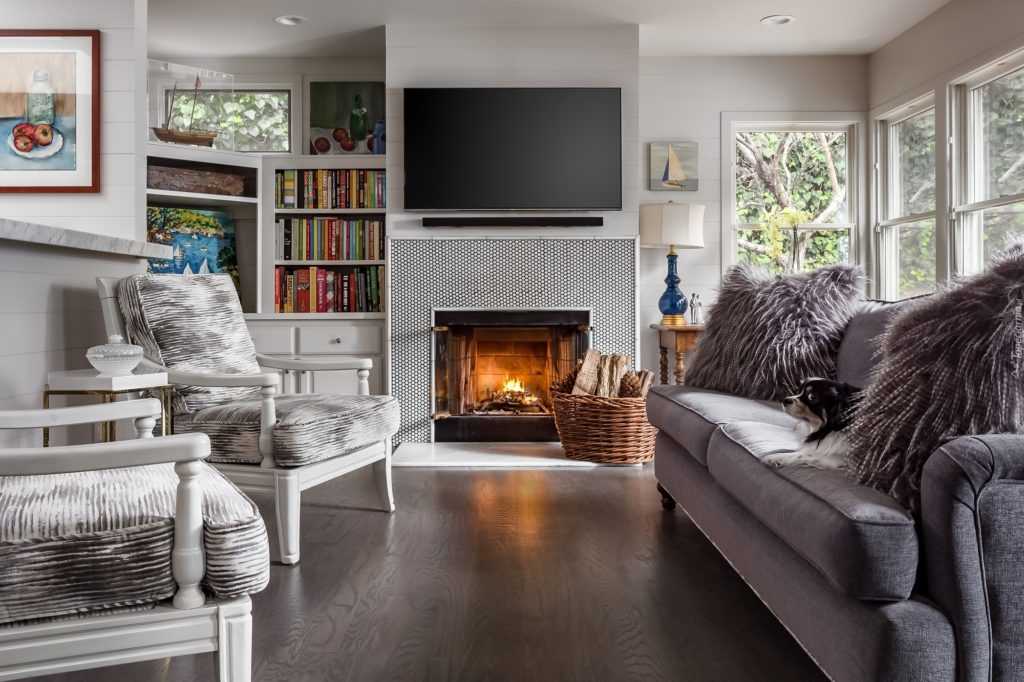 Именно в гостиной наиболее часто устанавливают камин. Это не удивительно, ведь эта комната зачастую довольно большая и идеально подходит для уютного семейного времяпровождения.
