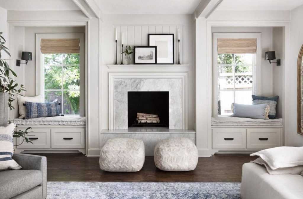 При обустройстве уютной гостиной с камином не забудьте правильно выбрать отделку камина. Благодаря ей камин будет выглядеть эффектно. В классическом интерьере хорошо будет смотреться камень, например, мрамор, который отличается устойчивостью к повреждениям и простотой очистки. Идеальным решением также станет использование песчаника — этот материал чаще всего встречается в светлых тонах, поэтому вы легко можете адаптировать его к теплой композиции.