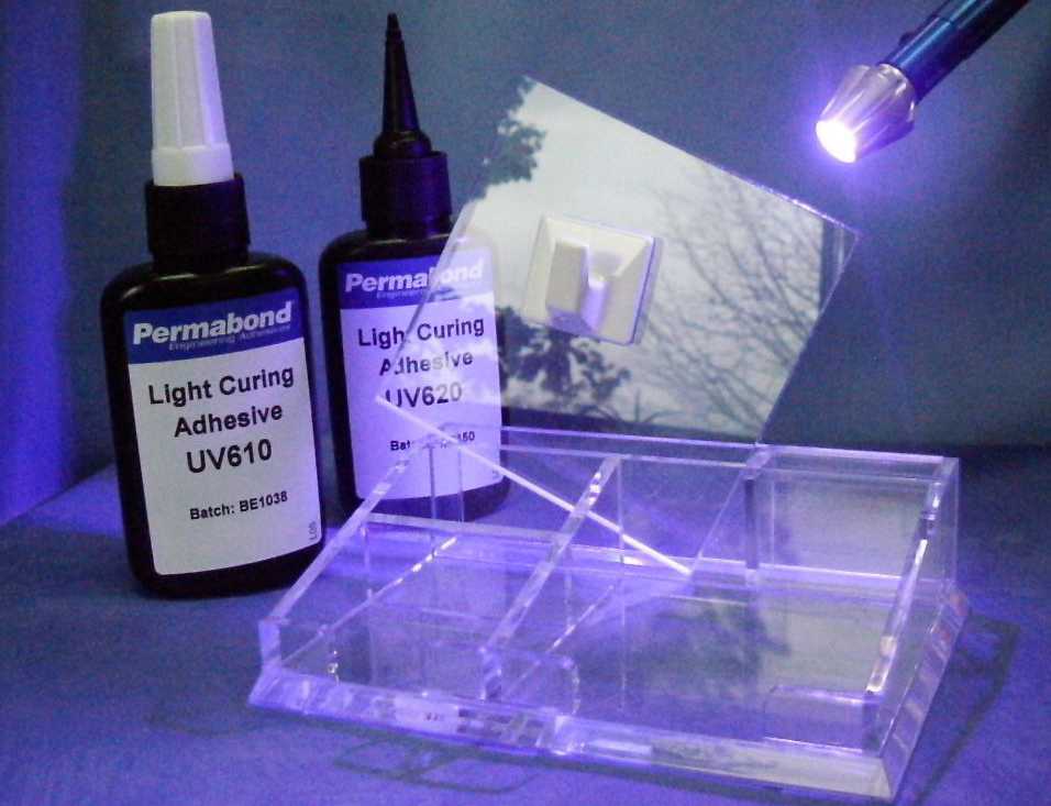 Состав ультрафиолетового отверждения отличается тем, что высыхание происходит лишь под воздействием ультрафиолета. Применим для приклеивания стеклянных и металлических деталей. Для дерева они не применяются.