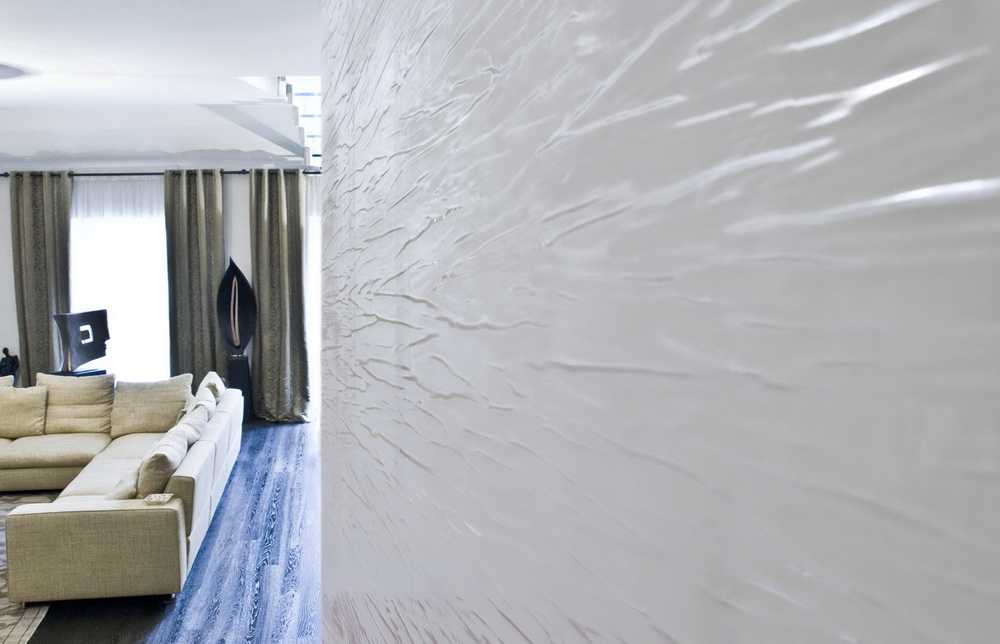 Для примера можно упомянуть такие проекты, как фактурная стена, эмитирующая морской бриз или песок. А для офиса хорошо подходит мрамор или покрытая трещинами стена с эффектом старины.