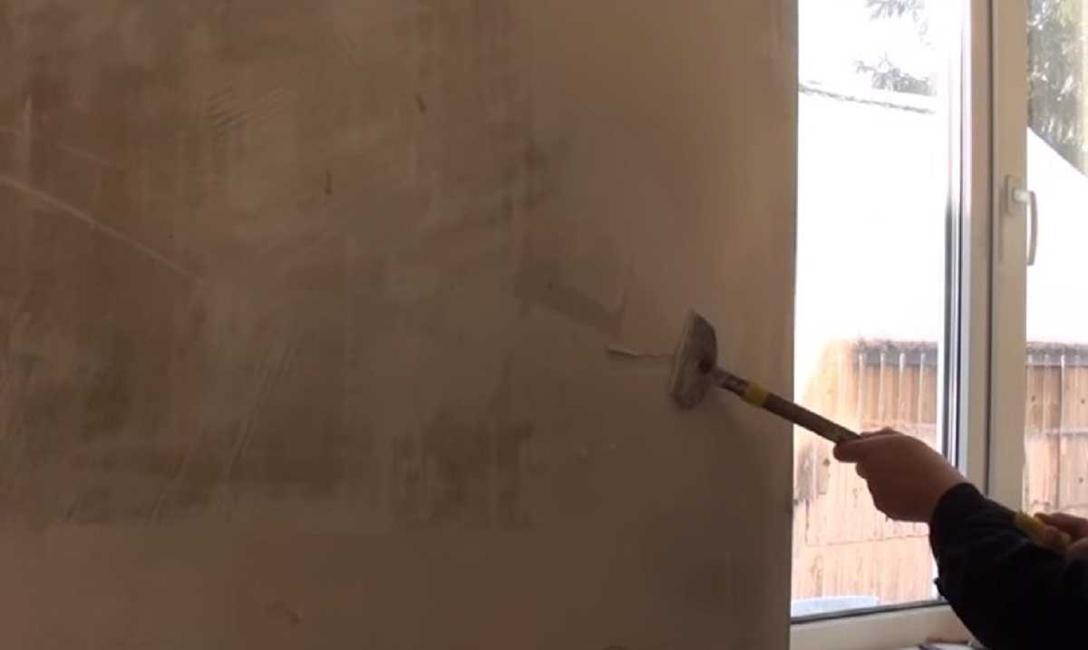 Если причиной ликвидации старого слоя является наличие пустот, то процесс не потребует много времени. Достаточно разбить при помощи молотка и зубила вертикальную полосу по краю стены. После этого останется лишь поддевать покрытие жестким шпателем или мастерком, что приведет к обрушению больших пластов