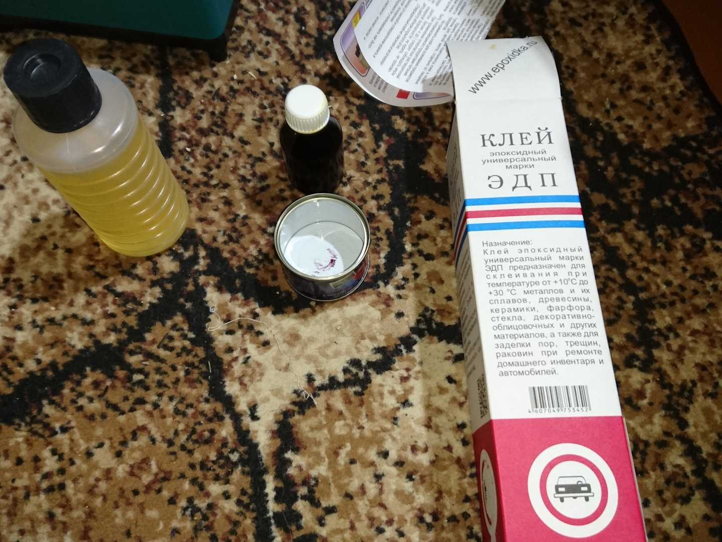 Чтобы ремонт вышел качественным, следует знать, как клеить эпоксидным клеем. Конечно, все нюансы, как смешивать отвердитель к клеящему составу, прописываются в прилагаемой инструкции. В классическом варианте на 10 частей смолы берется 1 часть отвердителя-катализатора. Причем в смолу постепенно добавляется отвердитель, а не наоборот.