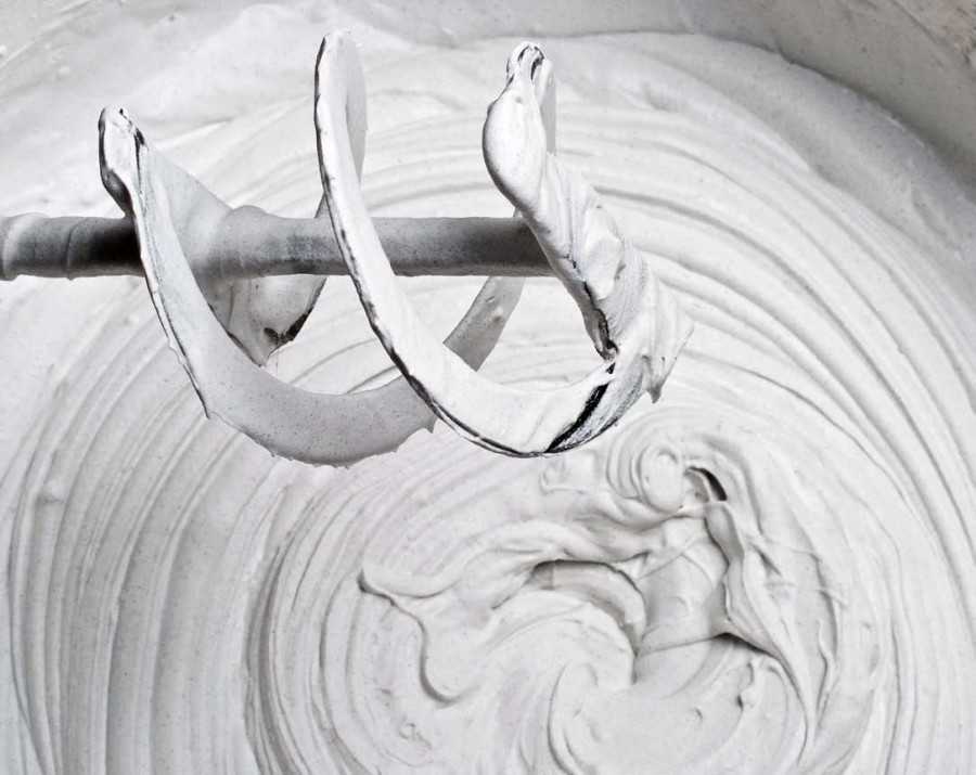 - Для начала возьмите небольшое количество воды, и постепенно добавляя в нее порошковый состав, перемешивайте все миксером.