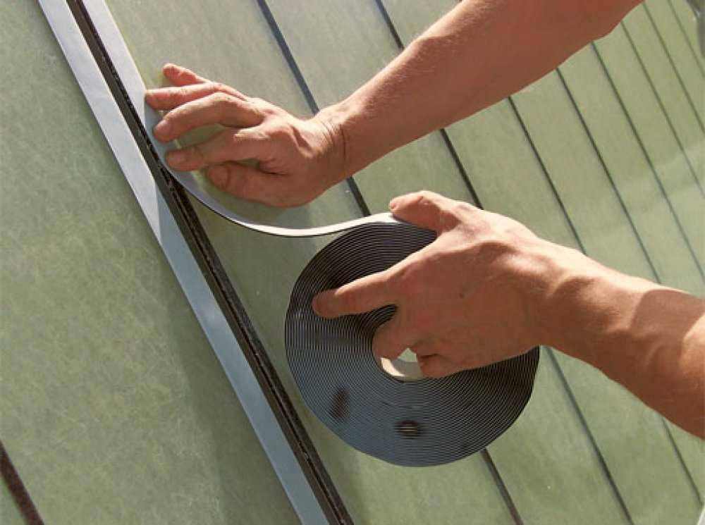 Как заделывают щели в кровельном материале с помощью битумной ленты