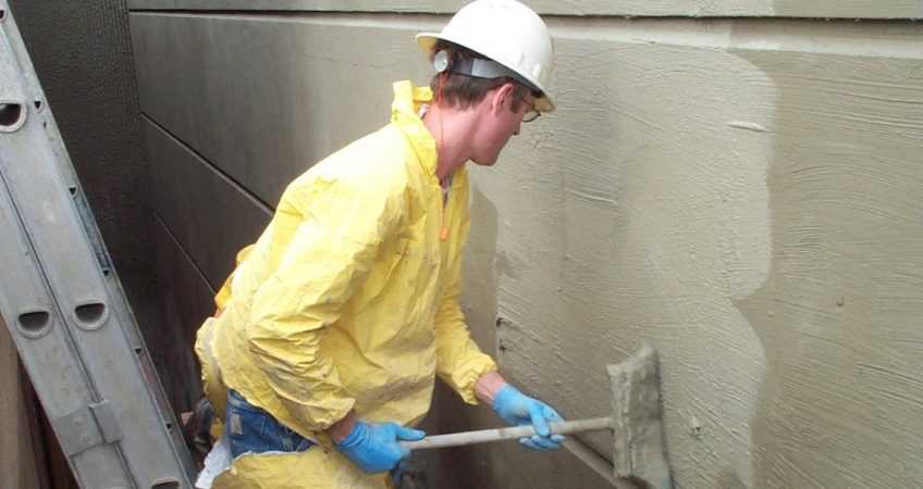 Нанесение проникающей гидроизоляции на бетонную стену.