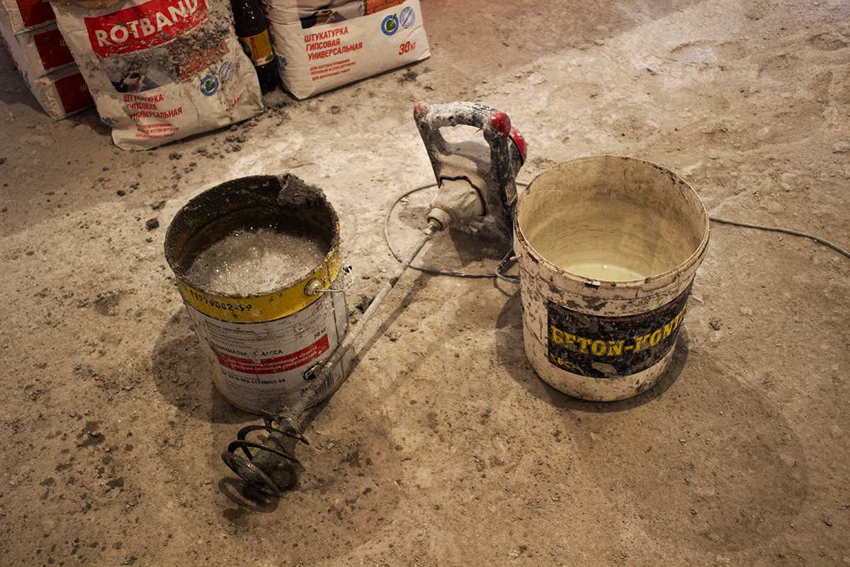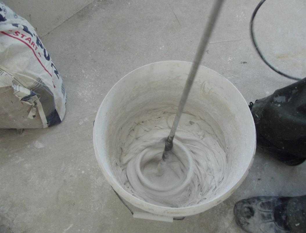Готовить такой раствор нужно в соответствии с рекомендациями на упаковке, используя для замеса строительный миксер или перфоратор с насадкой.