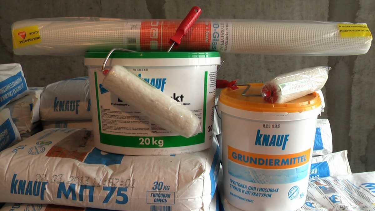 Штукатурка поступает в продажу в виде сухого порошка, который впоследствии смешивается с водой. Есть в продаже и готовые растворы, расфасованные в ведра разного объема, их наносят на стены без предварительной доработки. Универсальность гипсового раствора в том, что он успешно применяется для начального выравнивания и финишной отделки. В зависимости от назначения штукатурки в ее состав вводят добавки: