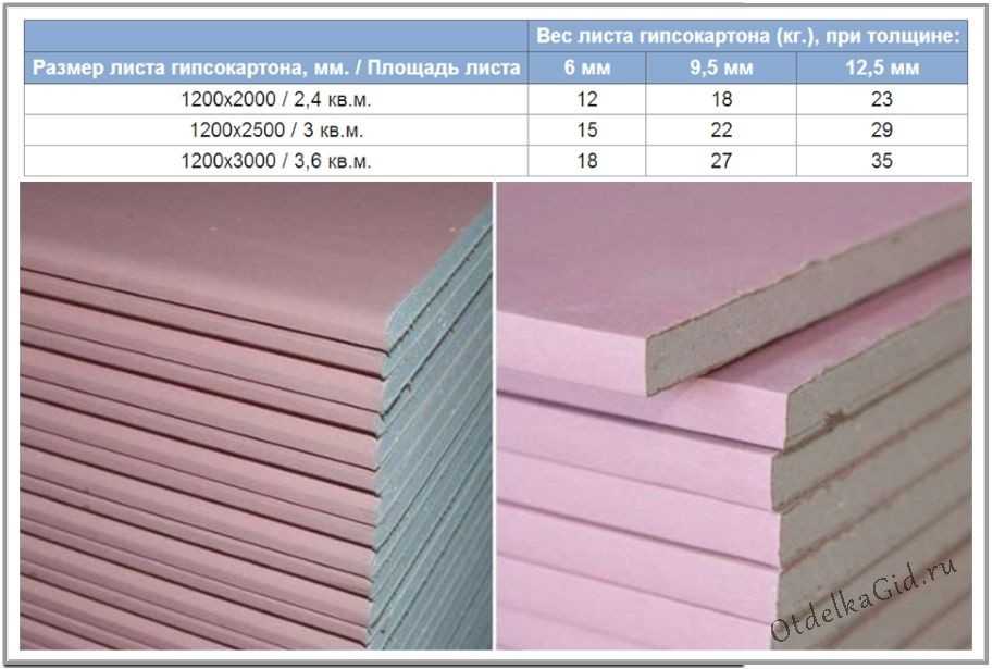 ГКЛО — это розовые либо серые листы с красной полосой. Размеры у них такие же, как и у обычного материала.