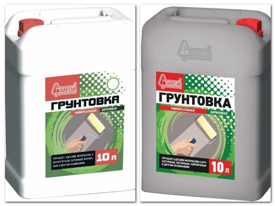 - Для наружных работ выбирают состав с водоотталкивающей основой. Внутри используют быстросохнущую грунтовку.