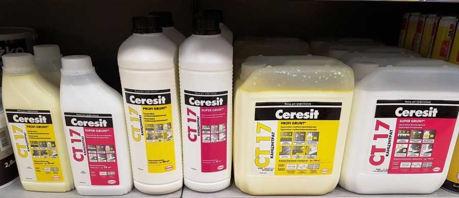 - Ceresit 17. Грунтовка для стен требующих глубокого проникновения и работы с бетоном. Отличается высокой морозостойкостью.