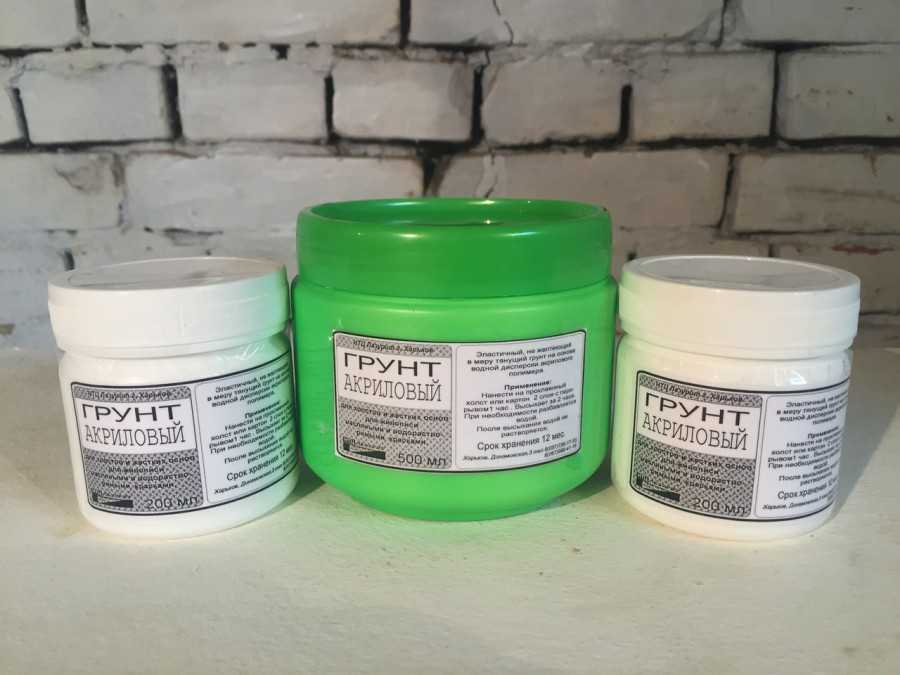- Акриловая грунтовка. Самый распространенный и недорогой материал. Способ приготовления: разбавить грунт водой. После нанесения она быстро сохнет, примерно 2-3 часа при средней комнатной температуре. В случае неоднородного цвета стены, существуют разновидности грунтовок с колером, которые позволят выровнять тон.