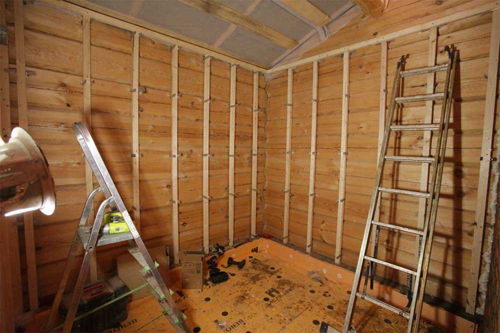 Проверка качества и степени усадки сруба – важный шаг, с которого начинается отделка деревянного дома. Изменение объема стен происходит за счет высыхания древесины. Как правило, процент усадки составляет до 7% от общей высоты, а сам процесс длится около 2 лет. Если дом был построен совсем недавно, стоит подождать с ремонтом.