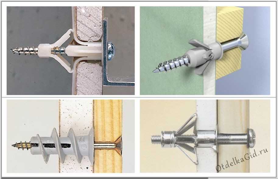 - дюбель “моль”. Наверное, самый простой и прочный способ фиксации предметов на отделку. “Моль” способен выдержать нагрузку до 25 кг на каждую точку. После ввинчивания крепежного болта дюбель раскрывается, упираясь в тыльную сторону обшивки и распределяя нагрузку по поверхности;