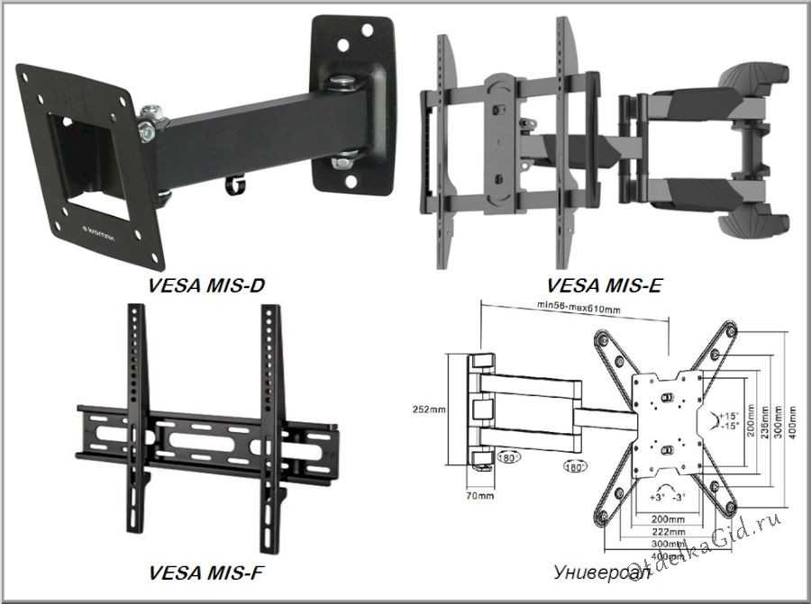 - VESA MIS-E. Эта вариация позволяет разместить на стене устройства с размером экрана от 23″ до 30,9″. Расстояние между крепежными точками – 20 х 10 или 20 х 20 см.