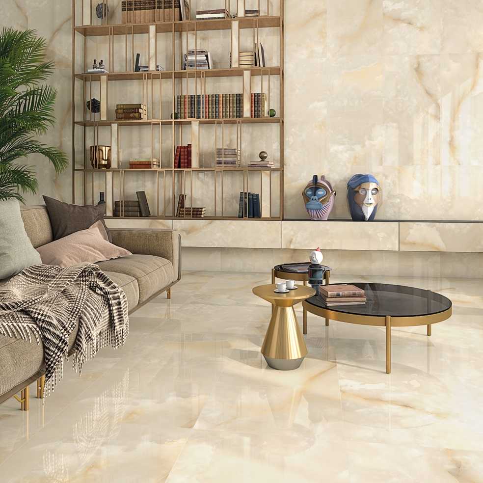 - Глянцевая отделка выглядит стильно, но требует тщательного ухода: грязь и разводы на ней сразу бросаются в глаза. Также полированная напольная плитка под мрамор может быть травмоопасной