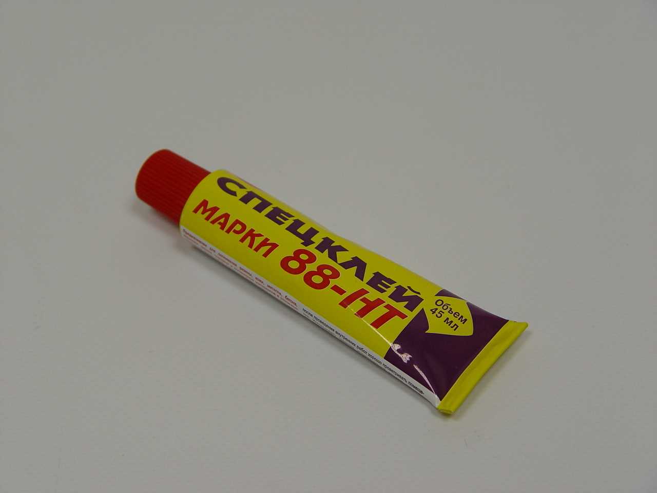 Спецклей марки 88 НТ имеет очень широкую сферу применения. Отличается такими характеристиками, как повышенная прочность и водоустойчивость, вне зависимости от того, какая жидкость на него воздействует – пресная или соленая. Может даже прочно соединить резину с металлом, стеклом, кожей или бетоном. Способен выдерживать влияние как высоких, так и низких температур от -50 до +70 градусов. Активно используется в аналогичных сферах, как и предыдущая разновидность, а также подходит для создания мягкой мебели.