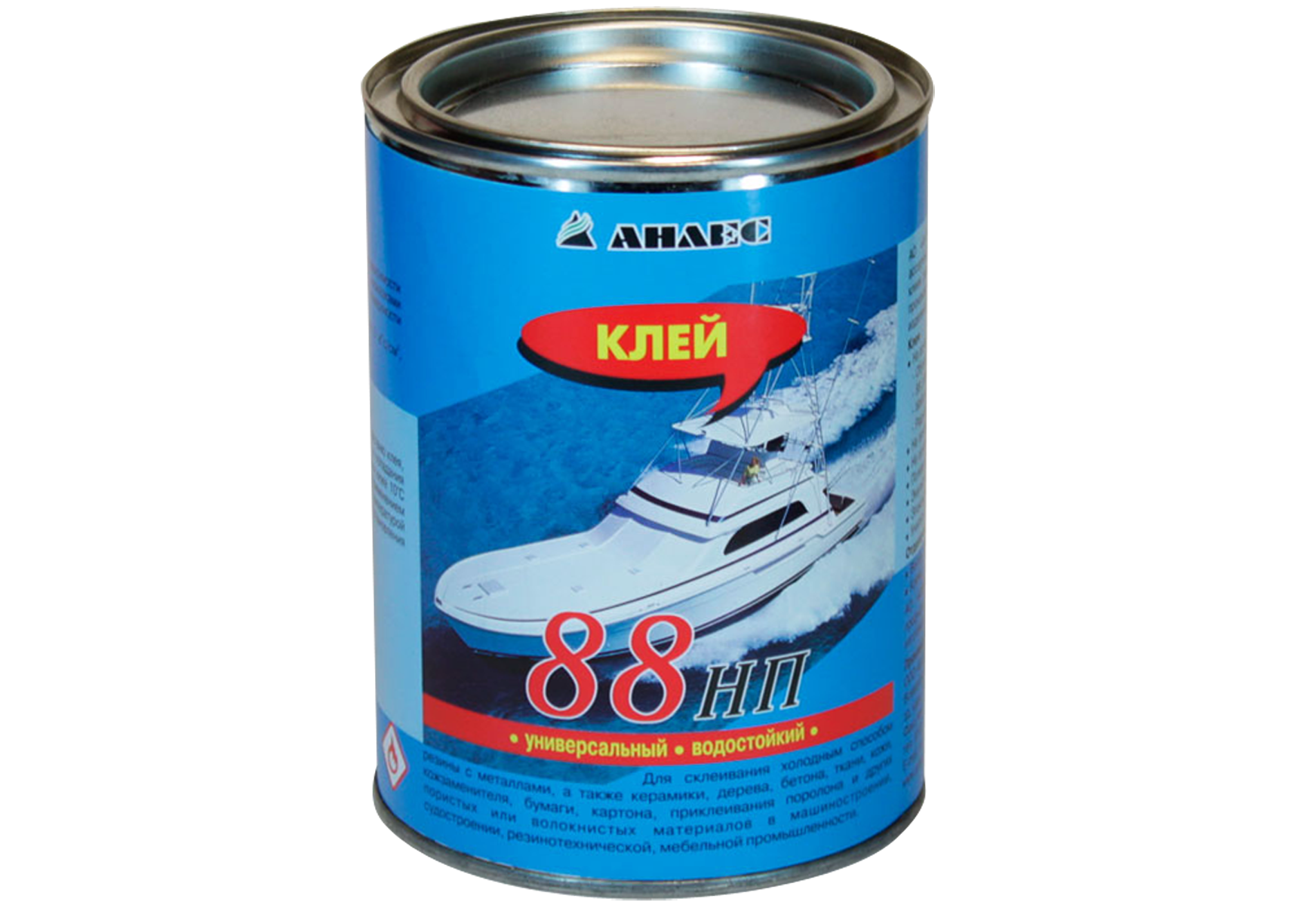 Клей 88 НП плотность вида лучше, чем у предыдущего. Устойчив к влаге, морозу, не приводит к образованию ржавчины на металлических поверхностях. Нашел применение в автомобильном, мебельном, авиационном производстве. Также может применяться в быту, им заменяют крепежные элементы.