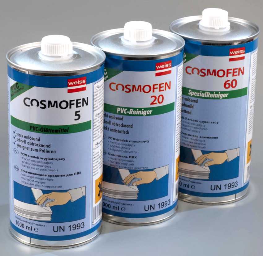 Cosmofen 5 (CL-300.110) является сильнорастворяющим очистителем, содержим алифатические кетоны, усиливающие воздействие. Космофен растворитель позволит удалить мелкие трещинки и царапинки, отполировать поверхности ПВХ, нивелировать последствия трения.
