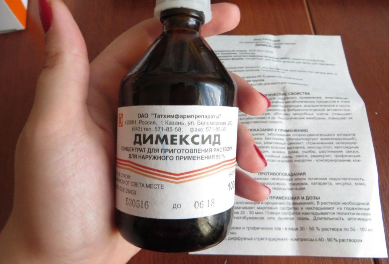 - нанести «Димексид» (наружное противовоспалительное и анальгетическое средство) на ватный диск, прижать к коже, после смыть проточной водой;