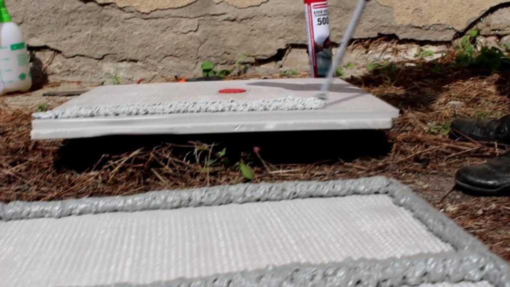- Излишки пены после высыхания срезать ножом и зашлифовать тёркой.