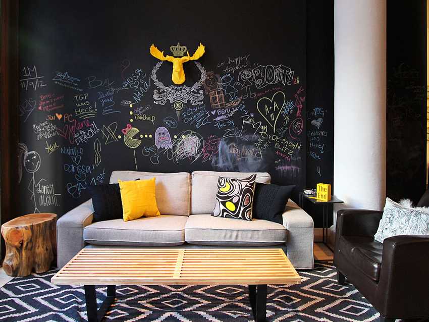 Используя краску такого типа, можно кардинально изменить обстановку в комнате, делая её необычной и стильной. Графитовая краска для стен играет как декоративную, так и практическую роль в помещении. Кроме украшения, она может служить для развлечения и обучения детей.